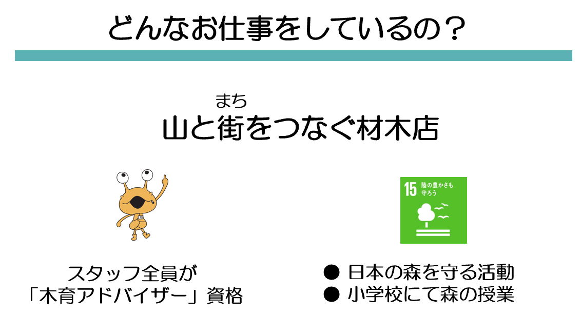 今回のワンデーチャレンジは、山と街をつなぐ材木店『有限会社新宅善廣商店』新宅隆史社長のこころざしムービーで学びます。