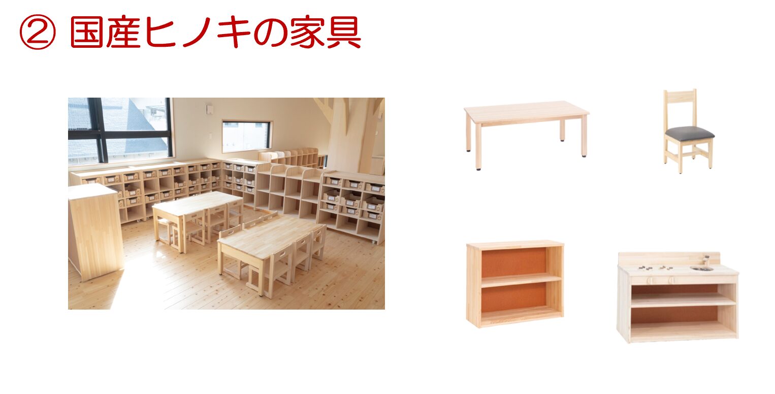 木材を売るだけでなく、国産ヒノキを使った家具も作られています。