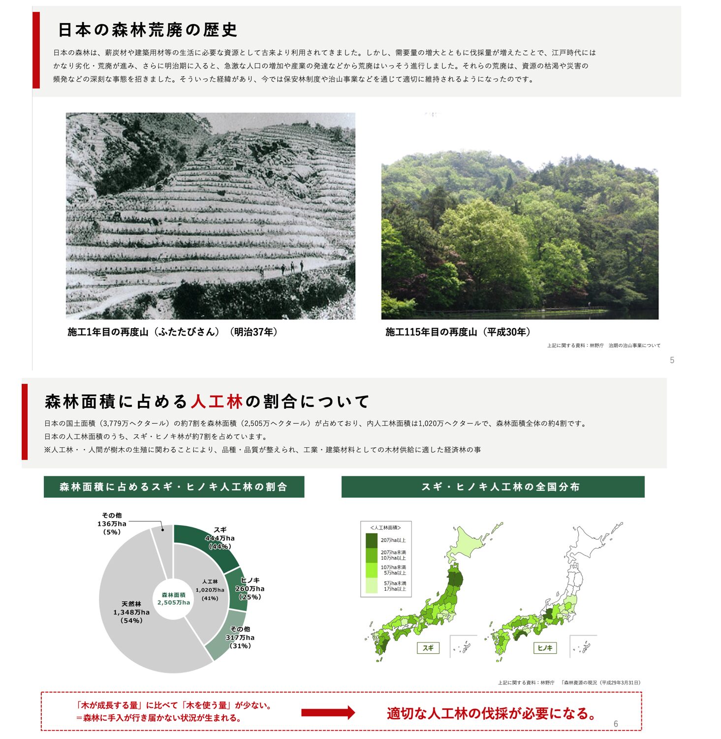 日本は、国土のおよそ70%が森林で占められており、そのうち約4割が人工林です。