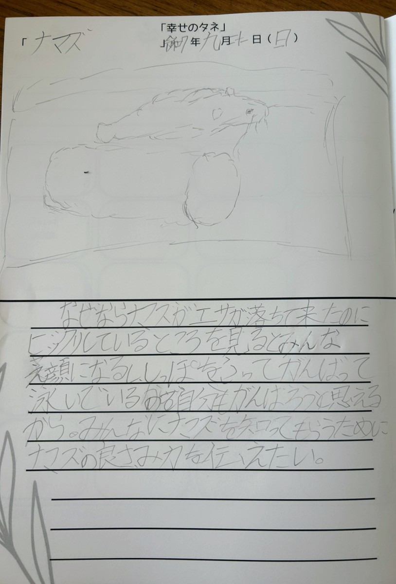 ナマズのがんばる姿から、自分もがんばろうと思えたことがいいね。