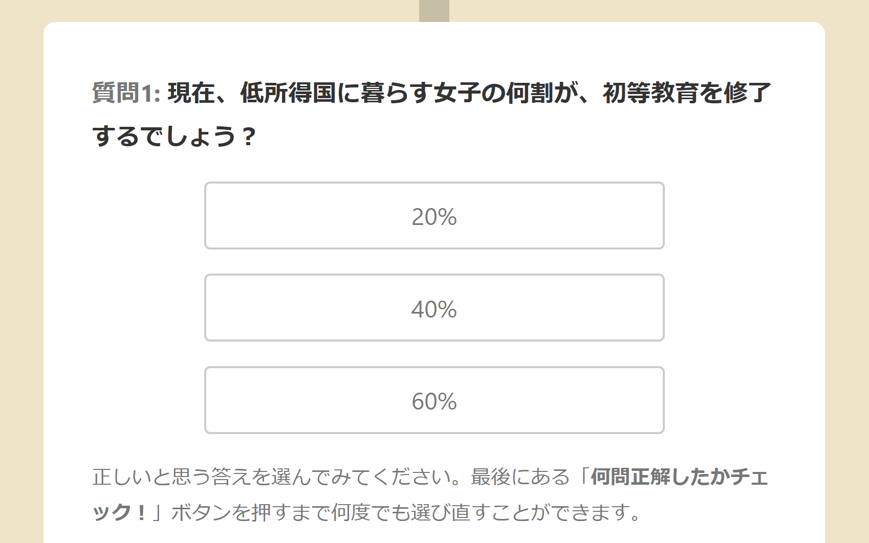 これは、世の中の事実に関するクイズです。