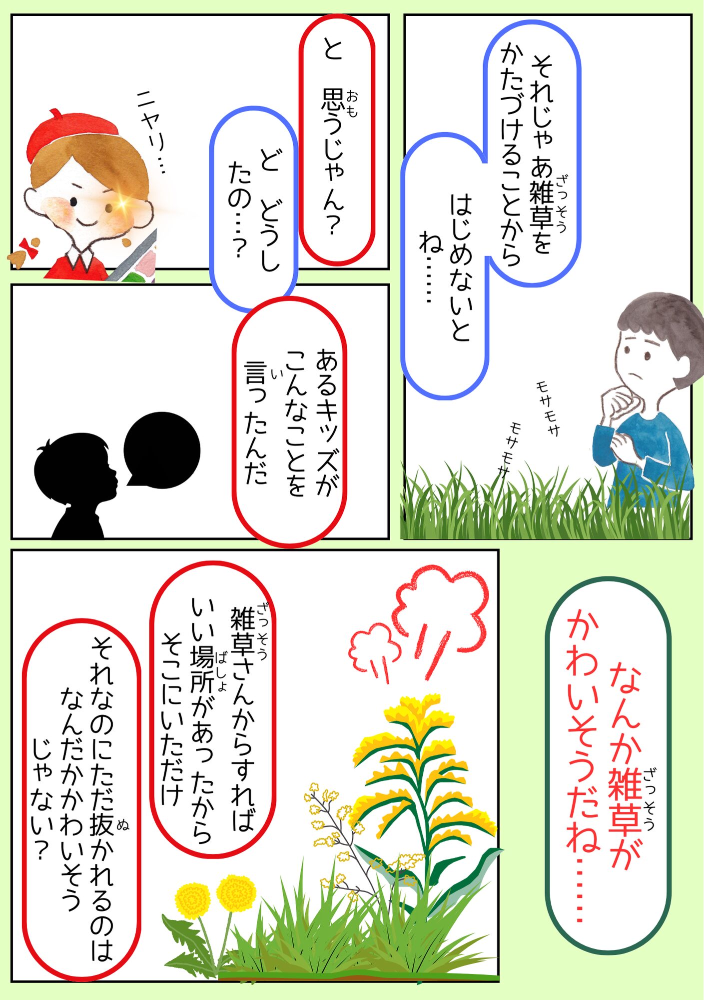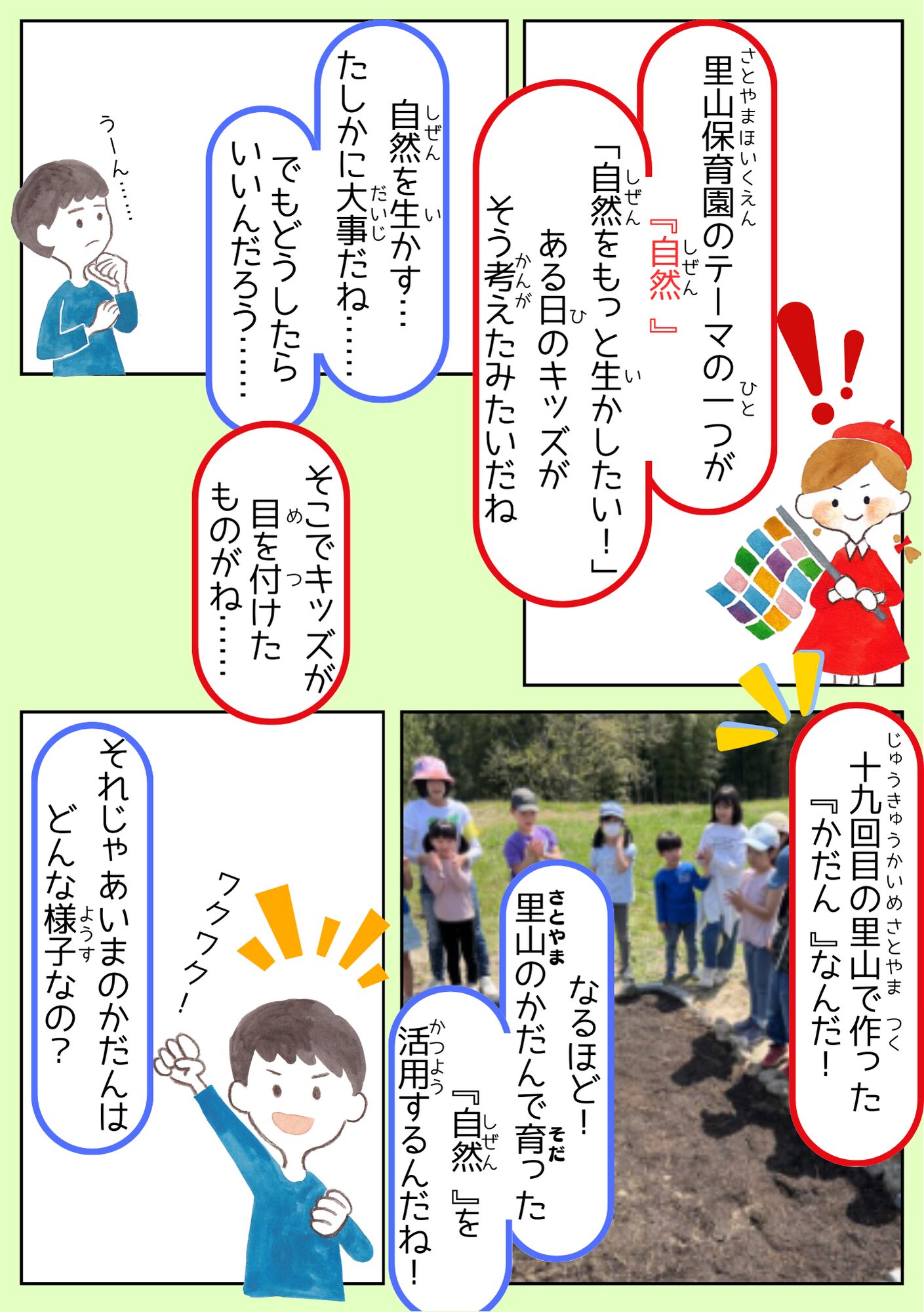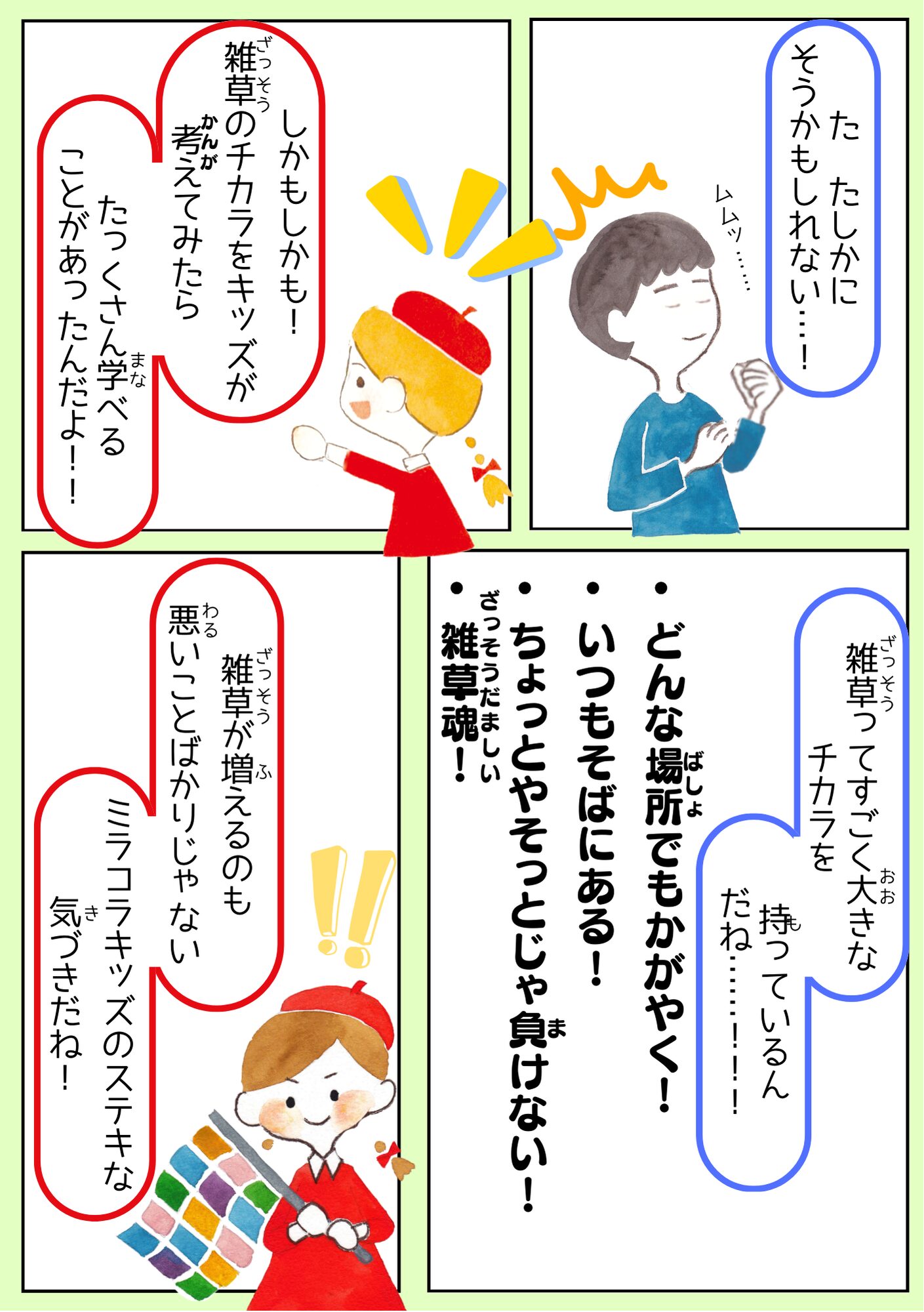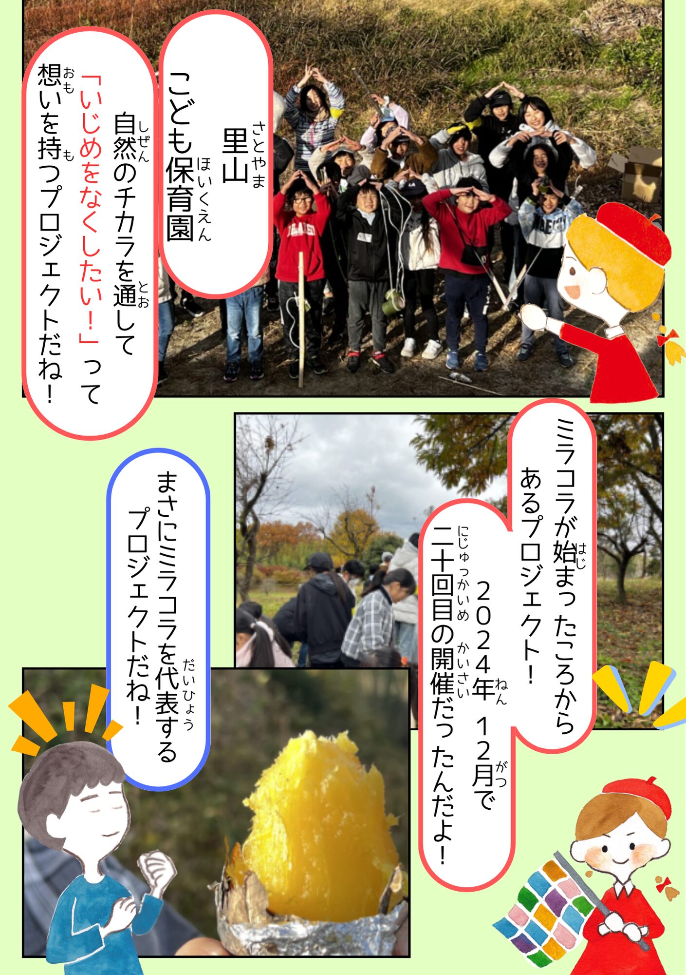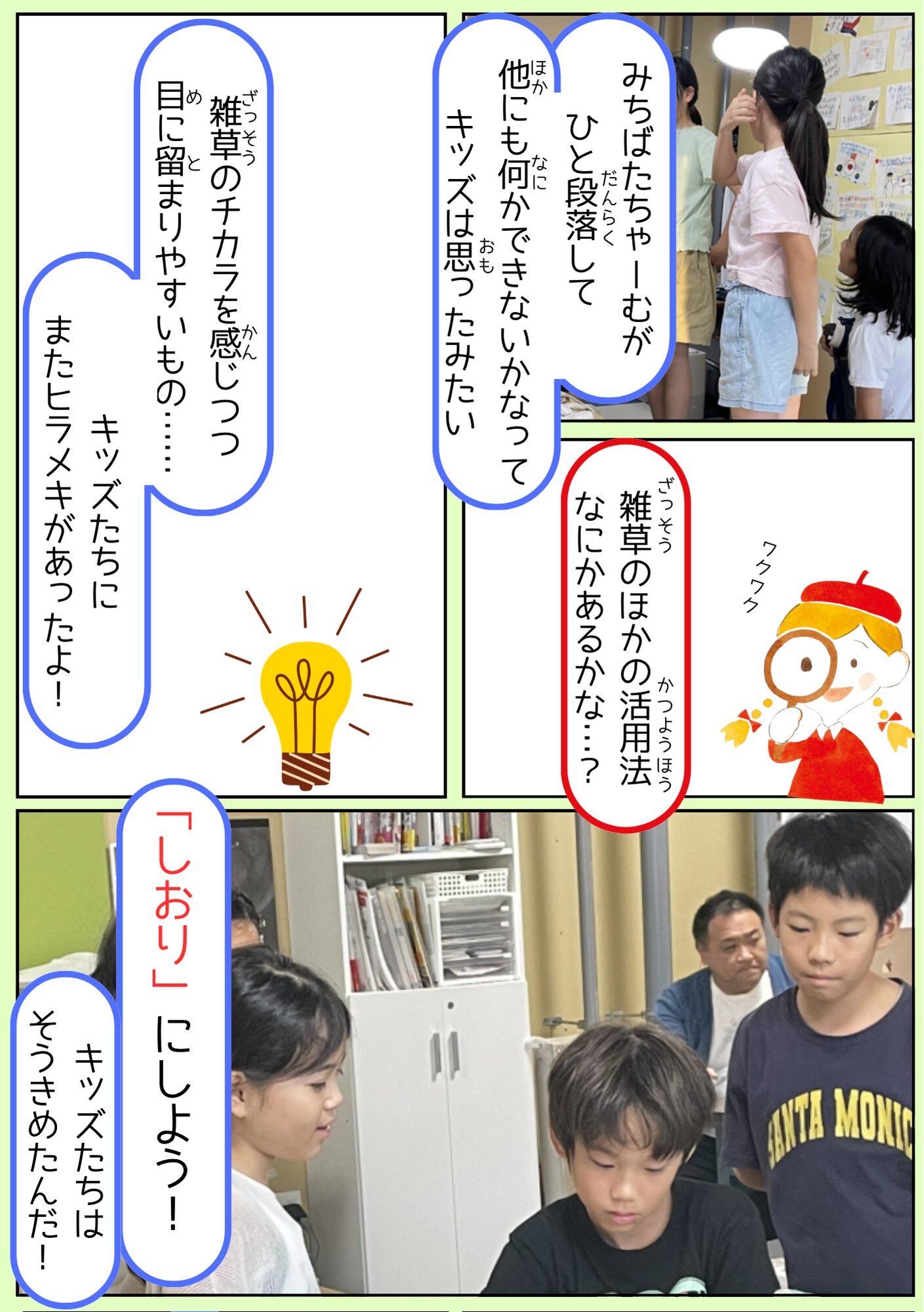 全国のミラコラ ミラコラ名古屋(長久手) ミラコラ大阪 ミラコラ天王寺 ミラコラ梅田天六 ミラコラ泉南 ミラコラ泉佐野 ミラコラ枚方 ミラコラ神戸 いのちの大切さを育む保育園 プロジェクト 2026319 【里山♡こども保育園】 自然を生かした商品開発 ~「ねがいのしおり」で雑草の力をはさみこむ!~