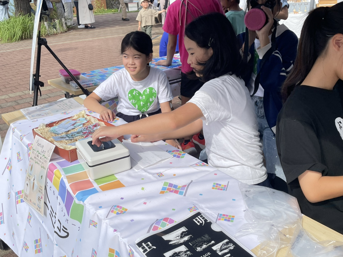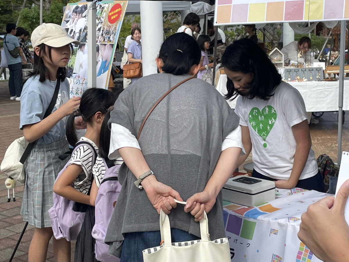 ミラコラブースのテントの中から前を通りがかるお客さんに