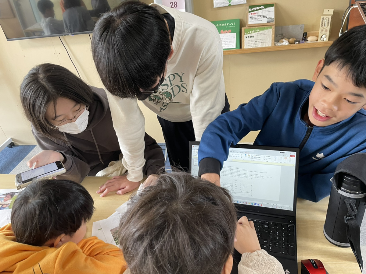 作業するキッズたちを見つめながら、その活動風景を撮影しながら